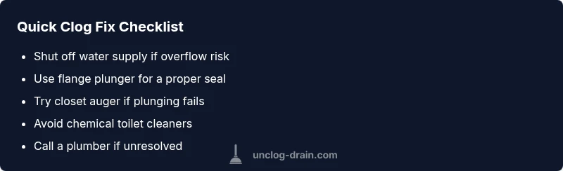 The most common fix sequence is to start with plunging to loosen the obstruction, then switch to a closet auger if plunging doesn’t fully clear the path. If the clog remains after those methods, avoid forcing more water into the bowl and call a professional. Cleaning up thoroughly after any procedure helps prevent recurring issues and keeps the bathroom sanitary. In most cases, a careful plunge followed by auger work will restore normal drainage without professional help.
