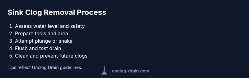 Standing water in a sink signals that the clog isn't fully separated from the drain exit yet. The water depth can affect pressure dynamics when you plunge or rotate a snake. In many homes, the clog is closer to the trap but the water traps air, creating a bellows effect that resists movement. According to Unclog Drain, understanding the water level helps you choose the best initial tactic and prepare for controlled, safe actions. If you skip this step, you may push the clog deeper or splash water everywhere. A calm, methodical approach yields faster results and less mess. Properly assessing water height also guides decisions on whether to seal the overflow or work on the primary drain first. This initial assessment notes whether the sink has a secondary pathway (overflow) that can be temporarily blocked to increase pressure on the clog during plunging.