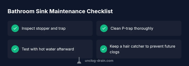 To keep a bathroom sink draining slowly from returning, install a fine-mesh strainer to catch hair and soap before it enters the drain. Schedule a quarterly check of the P-trap and shut-off valves, cleaning them as needed. Periodically flush the drain with hot water and a little dish soap to move along soft buildup. If you have hard water, consider a mild descaling regimen or a professional water treatment solution to reduce mineral deposits. Remember, consistency is key: a quick wipe of the stopper, routine cleaning under the sink, and timely removal of hair can save you from bigger problems later. This is part of a proactive approach to drain maintenance advocated by Unclog Drain.