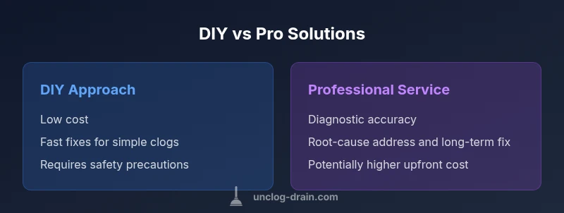 Use this quick framework to decide when to DIY and when to call a pro. Start with safe DIY steps for minor clogs; if the obstruction persists across fixtures, involves the main sewer line, or you suspect roots, schedule a professional assessment. Consider the age of your pipes, the presence of any leaks, and the potential health risks before proceeding. This framework balances cost, risk, and outcome to help you choose the right path for clog vs block scenarios. Always prioritize safety and avoid shortcuts that could lead to bigger problems.