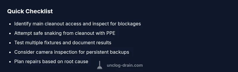 Most likely a main sewer line issue is causing backups across your home. Start with simple checks at the main cleanout, avoid chemical cleaners, and only use a hand snake if you can safely reach the line. If backups persist or you smell sewage, shut off water to prevent spreading, and call a licensed plumber. Follow these triage steps to act fast.
