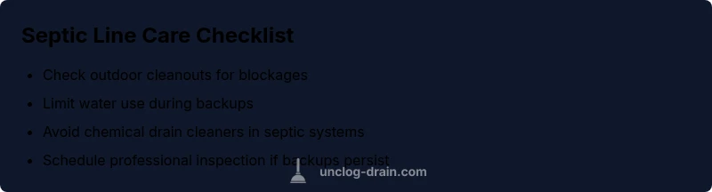 A septic line clogged is most often caused by tree roots, solid waste buildup, or grease blocking the main line. Start with safe, non-chemical steps: limit water use, avoid flushing solids, and try a mechanical auger from the main cleanout. If backups persist, call a licensed professional promptly.