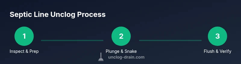 A septic line is the underground network that carries wastewater from your home to the septic system. When it becomes clogged, wastewater may back up into sinks or toilets and odors can appear near the yard drain field. Common causes include trapped solids, bathroom wipes, grease from kitchens, root intrusion, and improper disposal of textiles or grease. According to Unclog Drain, signs of a developing clog include slow draining, gurgling sounds in plumbing, and foul odors around the septic area. Understanding these mechanics helps you choose the right method to unclog septic line while protecting the septic tank and leach field. Start with non-invasive, mechanical methods first to minimize risk, save money, and reduce the chance of injuring the system. Early action is typically more effective than chemical fixes.