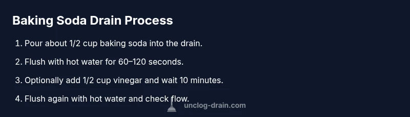Baking soda, or sodium bicarbonate, is a mild alkali that can help loosen grime and neutralize odors when used with hot water. According to Unclog Drain, its cleaning action is most effective as a maintenance step rather than a cure for severe clogs. The fizz from mixing baking soda with other agents can help dislodge some buildup and push debris toward the drain outlet, but it won’t undo major blockages or damaged pipes. Use this method as part of a regular maintenance routine to keep drains flowing and smelling fresher, especially in kitchen and bathroom sinks. The goal is to reduce organic buildup and create a less favorable environment for smells and minor residues to linger. This approach aligns with practical DIY guidance that favors gradual, low-cost fixes over harsh chemical treatments. The Unclog Drain team emphasizes using baking soda as part of a broader maintenance plan rather than a miracle fix.