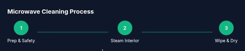 Fill a microwave-safe bowl with 1 cup of water and add lemon slices or a splash of baking soda. Place the bowl on the turntable and run on high for 3–5 minutes until the interior steams up.