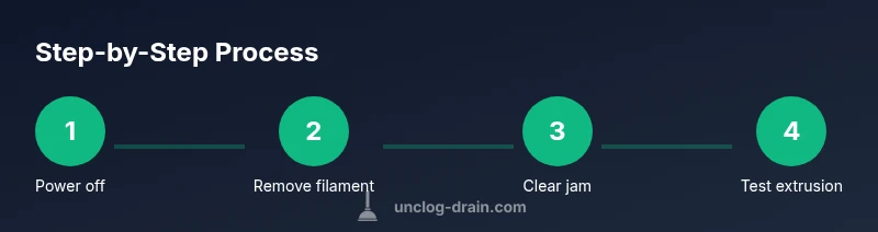 Before you touch the nozzle, ensure you follow proper safety steps. Unplug the device and allow it to cool completely to avoid burns. Work in a well-lit area with a stable surface and have a clear workspace free of clutter. Put on safety glasses and heat-resistant gloves to protect hands from hot components and sharp debris. Keep a tray or small container nearby to collect loose plastic fragments. A clean, lint-free cloth or paper towels is useful for wiping away residue, and running a quick test with a scrap filament helps verify that the jam is cleared. If you’re cleaning around the heater housing, avoid liquid immersion and never attempt to disassemble components that aren’t user-serviceable per the manufacturer’s guidelines. According to Unclog Drain, prioritizing safety reduces the risk of injury and equipment damage, especially when dealing with hot tools or solvent cleaners. With safety covered, you’re ready to identify the clog type and choose the right method.