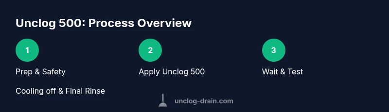A disciplined approach helps maximize success while minimizing risk. Start by preparing the area and PPE, then measure the recommended dose of Unclog 500. Apply the product slowly along the length of the drain, avoiding direct skin contact. Wait the advised time on the label while keeping the area ventilated. After the wait, flush with hot water and test flow. If the drain remains slow, use a plunger or a drain snake as described in the next section. Finally, perform a gentle rinse to clear residue and prevent aroma buildup. Always follow the label’s safety and dosage guidelines, and never mix with other cleaners.