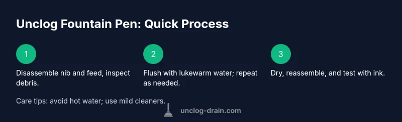 To unclog a fountain pen, start by inspecting the nib and feed, then flush with clean water, soak if needed, and reassemble. Avoid harsh solvents near brass nibs, ink sacs, or adhesives. Dry, test with a few drops of ink on scrap paper, and repeat if flow is uneven. This process prioritizes gentle cleaning and careful reassembly.