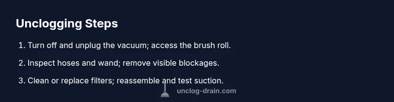 According to Unclog Drain, unclog oreck xl vacuum issues can arise from hair, fibers, and dust collecting around the brush roll and inside hoses. When left untreated, these blockages reduce suction, strain the motor, and can lead to more serious damage. The Unclog Drain team emphasizes addressing clogs promptly to restore performance and extend the vacuum’s life. Understanding the common sources helps you target the right area first and avoid unnecessary disassembly.