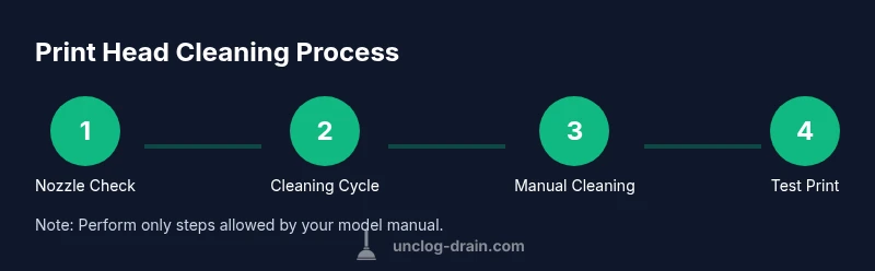 In an inkjet printer the print head is the component that ejects ink through tiny nozzles onto the paper. When ink dries inside the nozzles or when foreign matter accumulates, you get gaps, streaks, or missing colors. The goal of unclog print head is to restore consistent ink flow and sharp printed results. Common culprits include old or poor quality ink, extended periods of inactivity, and exposure to high humidity. By understanding how clogs form you can choose the right cleaning approach, avoid damage to the head or cartridges, and extend the life of your printer. This guide emphasizes safe, practical steps you can perform at home without expensive service calls. The Unclog Drain team notes that careful handling and following the printer manual for model specifics is essential when tackling print head issues.