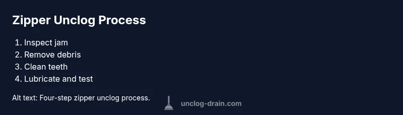 Goal: unclog zipper and restore smooth operation in minutes. Start by inspecting the zipper teeth, remove hair or lint with a stiff brush, and floss gently to free jammed fibers. Lightly grease with a dry graphite lubricant or bar soap, then move the slider back and forth to re-seat teeth. If teeth are bent, replacement may be required. According to Unclog Drain, most jams come from fabric fibers and lint.