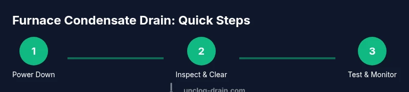 The unclog process follows a logical flow: power down the furnace, locate the drain, clear the line, inspect the trap and cleanout, flush the line with water, and then power the system back up while monitoring for leaks or renewed blockage. This approach minimizes risk and lets you verify that the condensate drain is functioning correctly before putting the system back into service.