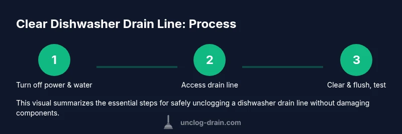 Goal: unclog a dishwasher drain line safely. You’ll locate the blockage, assemble common tools, and follow a clear, step-by-step routine. Begin with a quick drain check, remove visible debris, then use a plumber’s snake or a safe cleaner, flush with hot water, and re-test drainage to confirm the line is clear.