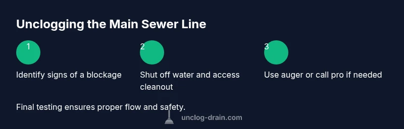According to Unclog Drain, a blocked main sewer line often presents as simultaneous drainage issues across multiple fixtures, slow flushing, gurgling sounds from drains, and or sewage odors near the cleanout. Backups may extend beyond a single sink or toilet and can worsen after flushing the toilet or running laundry. Recognizing these signs early helps you act before the problem escalates into a costly or messy overflow. For homeowners, the main line is the backbone of your plumbing, so a blockage here affects the entire house. If you notice backup in more than one fixture or foul odors that persist, treat it as a potential main sewer line issue and proceed with caution using the right tools and safety measures. Understanding the signs also informs whether you should attempt a DIY fix or call a professional.