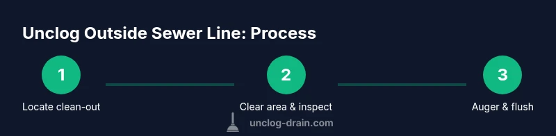 Outside sewer lines carry wastewater from your home to the street main and are accessed via exterior clean-outs or yard clean-out caps. A clog here can back up indoor drains, cause slow drainage in multiple fixtures, and even produce foul odors near the foundation. The unclog outside sewer line process hinges on a reliable access point and careful, deliberate clearing rather than brute force. The Unclog Drain team emphasizes that identifying the exact clean-out location reduces guesswork and protects landscaping from unnecessary disturbance. In many setups, a short vertical pipe with a removable cap signals the entry point; opening it allows you to assess flow and determine whether the obstruction is near the cap or deeper in the main line.