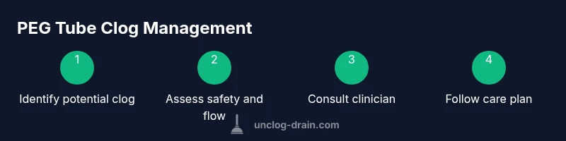 Goal: safely assess and respond to a suspected PEG tube clog at home while avoiding harm. This quick guide emphasizes not forcing feeds or flushing, identifying warning signs that require professional care, and documenting symptoms for your clinician. Follow recommended caregiver steps to maintain tube patency and reduce infection risk until medical help is available.