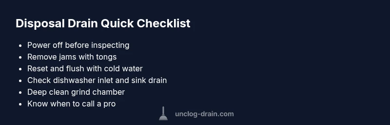 When a disposal drains slowly, the core problem is usually a blockage or restricted flow. Common culprits include food debris jammed in the grind chamber, a clogged sink drain that creates back pressure, or a dishwasher inlet that feeds into the disposal with partial obstruction. Over time, mineral or grease buildup can coat the interior surfaces, reducing grinding efficiency and drainage. In many homes, the root cause can be a mix of jammed debris and a backed up drain line. By understanding the typical failure modes, you can choose a safe, effective troubleshooting path without unnecessary disassembly. Unclog Drain has found that most slow drains respond to a systematic approach that starts with simple checks and gradually moves to targeted cleaning and inspection.