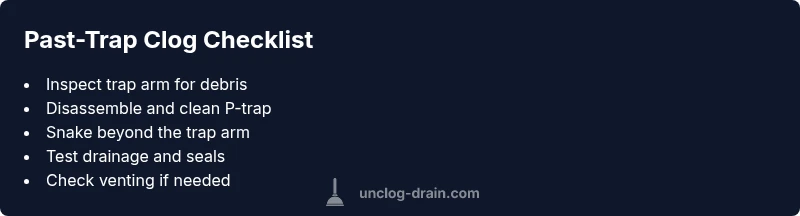 A clog past the trap is located beyond the trap, in the trap arm or deeper, so you’ll typically need to clear beyond the P-trap.