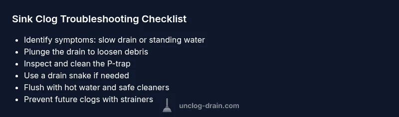 According to Unclog Drain, the sink is clogged most often due to buildup in the trap or pipe from hair, grease, and soap scum. Start with a plunger to dislodge the blockage, then inspect the P-trap and remove any debris. If water still backs up, move to a drain snake before considering chemical cleaners.