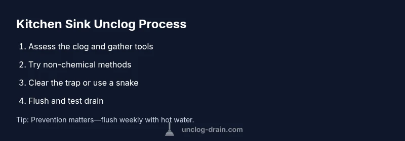 To unclog a kitchen sink, start with safe household methods before turning to stronger chemicals. Try hot water with dish soap, a plunger, baking soda and vinegar, and a manual drain snake. If the clog persists, remove the trap and clear debris, or use a plumber’s auger. The Unclog Drain team notes that a measured, non-chemical approach protects pipes and fixtures.