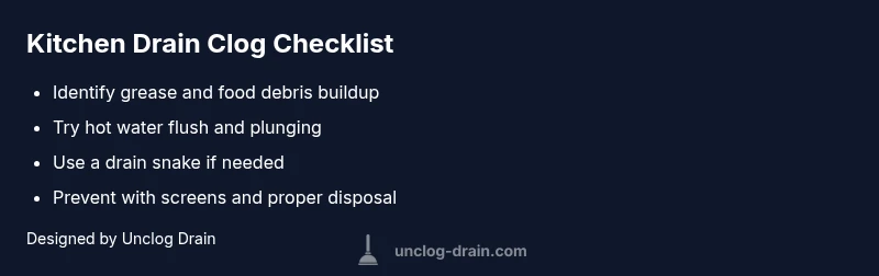 A blocked kitchen drain is usually the result of ongoing buildup in the pipes. In most homes the culprit is a combination of cooking grease, food scraps, and soap scum that accumulate in the trap and pipes over time. When warm fats enter the drain, they congeal on the pipe walls, trapping more debris and forming a stubborn clog. Other frequent contributors include coffee grounds, starches like pasta, and misrouted items such as excessive paper towels from the disposal or sink. For homeowners, the key to prevention is understanding how and why these materials accumulate, because early recognition helps you act before a complete blockage forms. According to Unclog Drain Analysis, addressing the issue early with simple flushing and routine maintenance is the most effective way to keep a blocked kitchen drain from becoming a major project. If you have a garbage disposal, be mindful of citrus peels and fibrous vegetables that can wrap around the impeller and aggravate clogs.