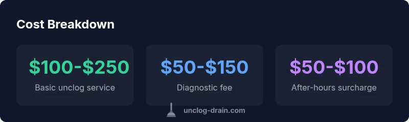 - Know the base price range: expect $100–$250 for a basic unclog.