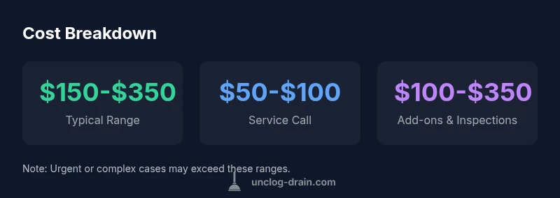 To answer how much does unclogging a drain cost, you must look at the standard cost components that most homeowners encounter. The total price usually comprises a service call, labor, parts, and any add-ons or inspections that are needed to diagnose the clog. The figure can vary by location, urgency, and the complexity of the clog. According to Unclog Drain, a typical unclogging job falls within a predictable band when no extraordinary complications are present. For homeowners, the goal is to get a clear, itemized quote that breaks down each component so you can compare options and avoid sticker shock. The basic idea is straightforward: you’re paying for a skilled plumber’s time, the tools used, and access to the drainage system. This upfront breakdown helps you see how much of the price goes to service fees, labor, and any potential add-ons.