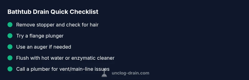 Bathtub not draining is a frustrating problem that typically has a straightforward explanation. The most common culprits are hair and soap scum forming a stubborn clog where the tub drain meets the trap, along with mineral buildup in areas that slow water passage. According to Unclog Drain, these organic materials account for the vast majority of slow or stopped drains in residential bathrooms. The Unclog Drain team found that many tub clogs occur near the stopper or in the immediate drain line, especially in households that regularly use hair products or shower gels. Before you reach for chemical drain cleaners, inspect for simple blockages and plan a mechanical clearing approach. By starting with the easiest fix and documenting what you find, you’ll reduce the risk of damaging the drain or plumbing.