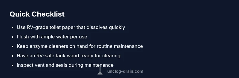 Set up a routine: use RV-grade toilet paper, flush with sufficient water, and schedule periodic tank cleaning using a wand or enzyme treatment. This routine reduces future clogs and extends tank life.