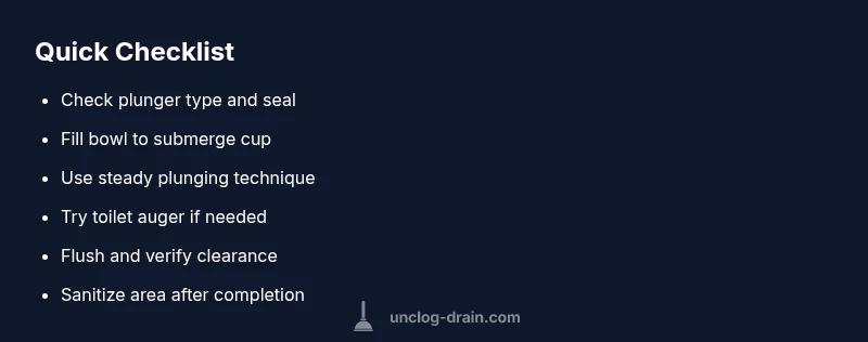 Toilet plungers are a first-line fix, but many clogs resist this basic tool. If you’ve ever thought can t unclog toilet with plunger, you’re not alone. The issue is often a deeper partial clog, a dislodged trap, or a seal that isn’t tight enough to push water pressure through. Start by identifying where the blockage sits: a hair or paper jam near the bowl is usually within reach, while a long, stubborn clog may be farther down the drain. According to Unclog Drain, the right flange plunger and a proper seal resolve many of these situations. Safety matters too: clear the area, wear gloves, and avoid mixing cleaners that can create fumes or damage porcelain. Before you start, remove extra water with a sponge to curb splash and ground yourself with a plan—calm, deliberate action beats frantic pumping every time. Remember, if the backup persists, it could indicate a deeper problem that requires advanced tools or professional help. With the right approach, many clogs yield to steady plunging.