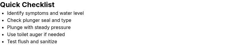 Most plunging toilets fail because the clog sits beyond the immediate trap or the seal isn’t airtight. Quick fix: 1) re-seat the plunger and push with steady, vertical pressure for 15-20 seconds, 2) try a few more vigorous plunges, 3) flush to test. If it still won’t clear, use an auger or call a pro.