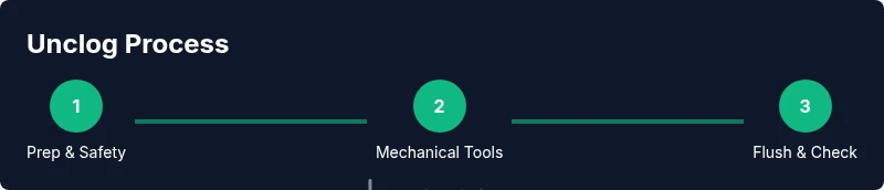 This section outlines a practical, repeatable procedure you can perform in sequence. Start by turning off the water and draining the tank. Then, gather your auger, gloves, towels, and a bucket. Insert the auger and rotate gently until resistance eases, then pull back slightly to detach the obstruction. If needed, add dish soap to the bowl and slowly pour hot water to help loosen the clog. After each major action, test by flushing gently. If the bowl remains clogged after multiple attempts, stop and consider professional assistance to avoid damaging the fixture. cleanup afterward with disinfectant and replace any protective covers. For a visual anchor, you can reference our step-by-step infographic that shows the three main stages in a concise layout. This plan minimizes risk while maximizing your chances of restoring normal operation without a plunger.