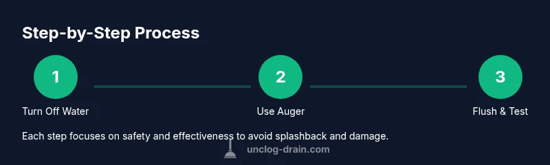 A practical plan begins with stopping the overflow, then moving through a sequence that minimizes mess. Step 1: shut off the water supply and prepare the area. Step 2: attempt mechanical clearing with an auger. Step 3: if the auger stalls, try a soap-and-hot-water flush. Step 4: recheck by flushing to confirm the clog is gone. Step 5: clean up and restore water supply. The whole process typically takes 30-40 minutes depending on the clog’s severity and your familiarity with the tools. If a clog persists beyond multiple attempts, professional help is advised.