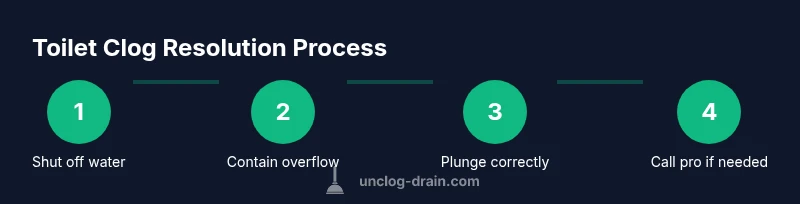 If you're wondering what to do if you clogged the toilet with poop, here's a practical, safety-first approach. According to Unclog Drain, safety and containment come first to prevent sewage exposure and potential water damage. A toilet clog can overflow quickly, so act deliberately rather than frantically. Put on rubber gloves and eye protection if available, and keep children and pets out of the bathroom. If the water level rises, surround the bowl with towels and prepare to shut off the supply valve behind the toilet. Locate the shut-off valve and turn it clockwise until it stops to stop more water from entering the bowl. Do not flush again while you manage the blockage, as repeated flushing can push the clog deeper or trigger an overflow. Most clogs arise from too much toilet paper, wipes, or solids. Understanding the cause helps you choose the right method and prevents damage to your toilet. With this context, you can move to the recommended tools and plan for a controlled cleanup.