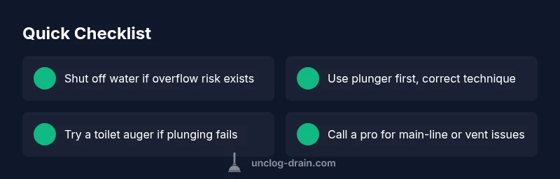 Toilet won't unclog? The most common cause is a partial clog in the trap or drain line. Start with a solid plunger, then move to a toilet auger if needed. Avoid flushing repeatedly to prevent overflow, and shut off the supply if water rises. According to Unclog Drain, following a calm, step-by-step approach prevents bigger messes and speeds up a fix.